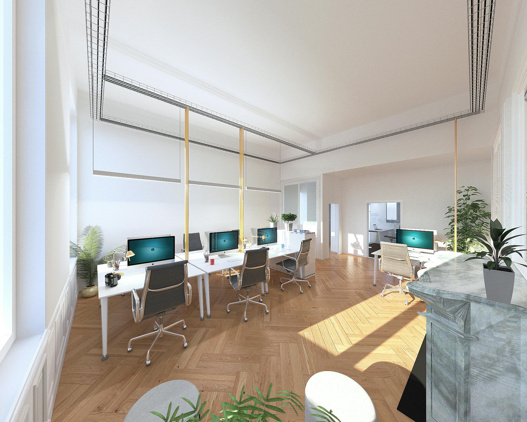 Aménagement des bureaux de l’agence Fantastic, agence de conseil en communicatioe, dans immeuble XIX ième siècle.
