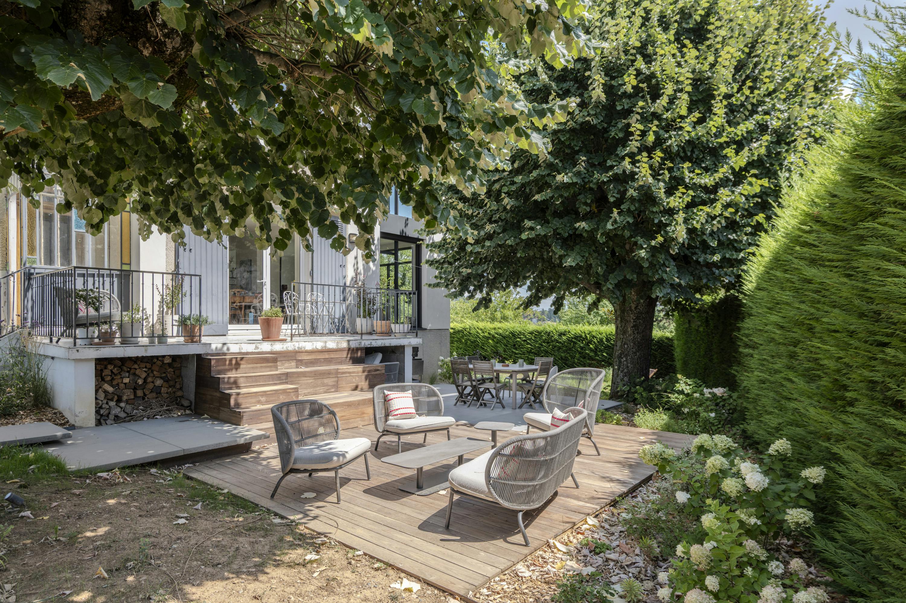Work has been carried out on the terrace to link it with a raised ground-floor level.