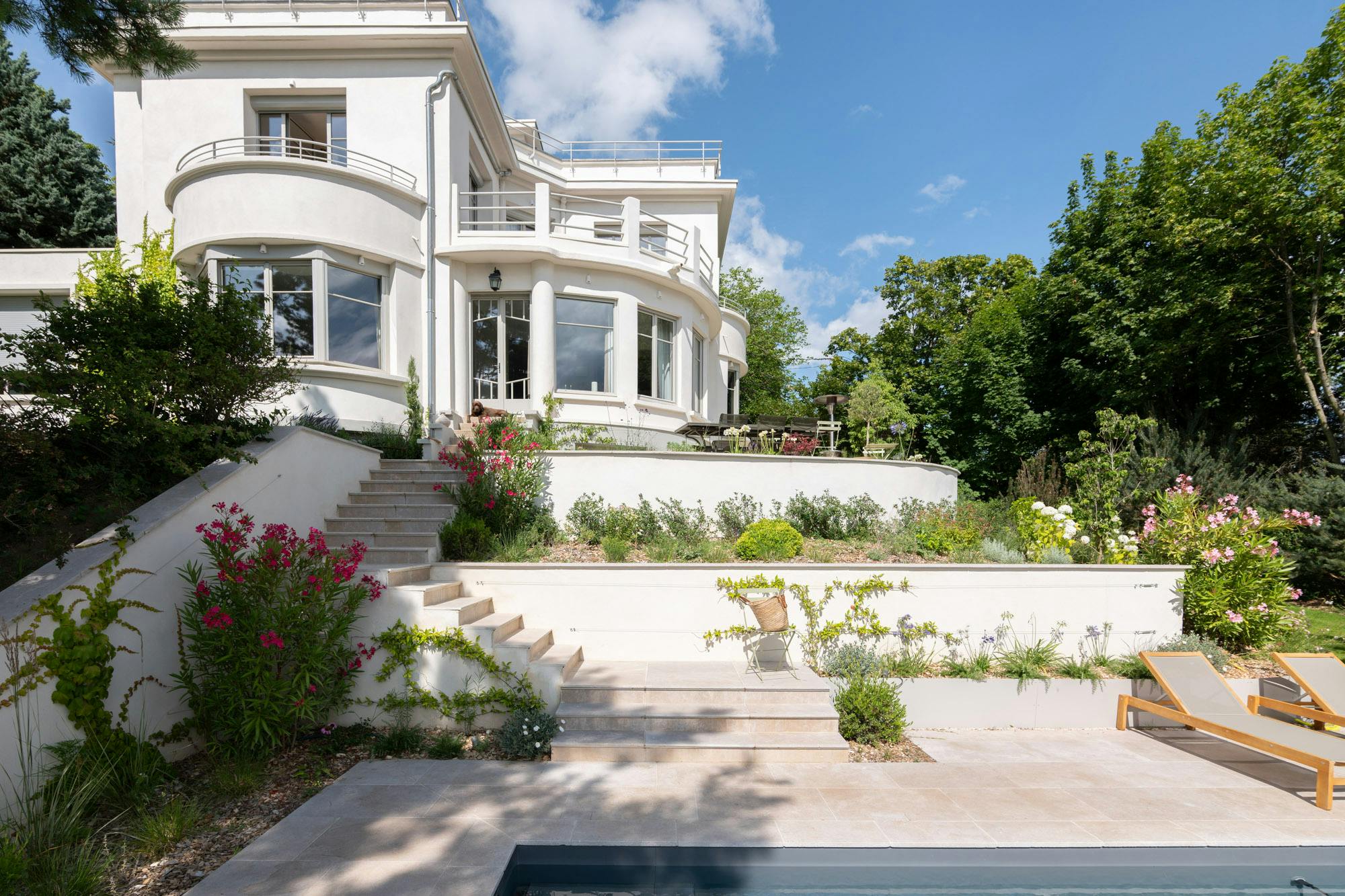 The existing house built in 1937 takes a style inspired by architects of the modern era such as Mallet Stevens, Le Corbusier on his first projects, inspired by the Staatliches Bauhaus school, early 20th century.
