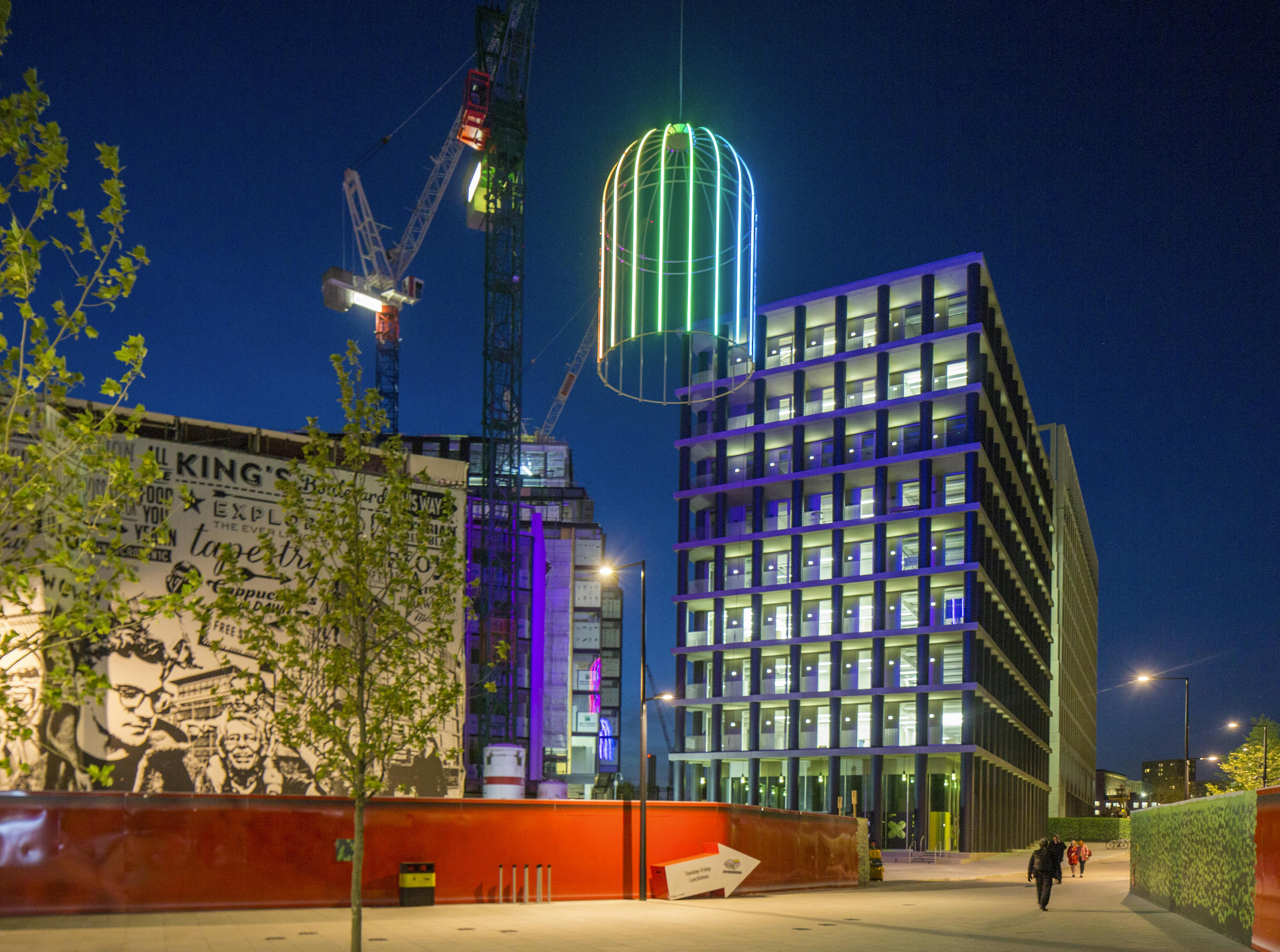 This light installation, suspended in the air by the crane present on the site, accompanied its development and was a nomadic installation on the major urban renewal site from 2011 to 2013.
