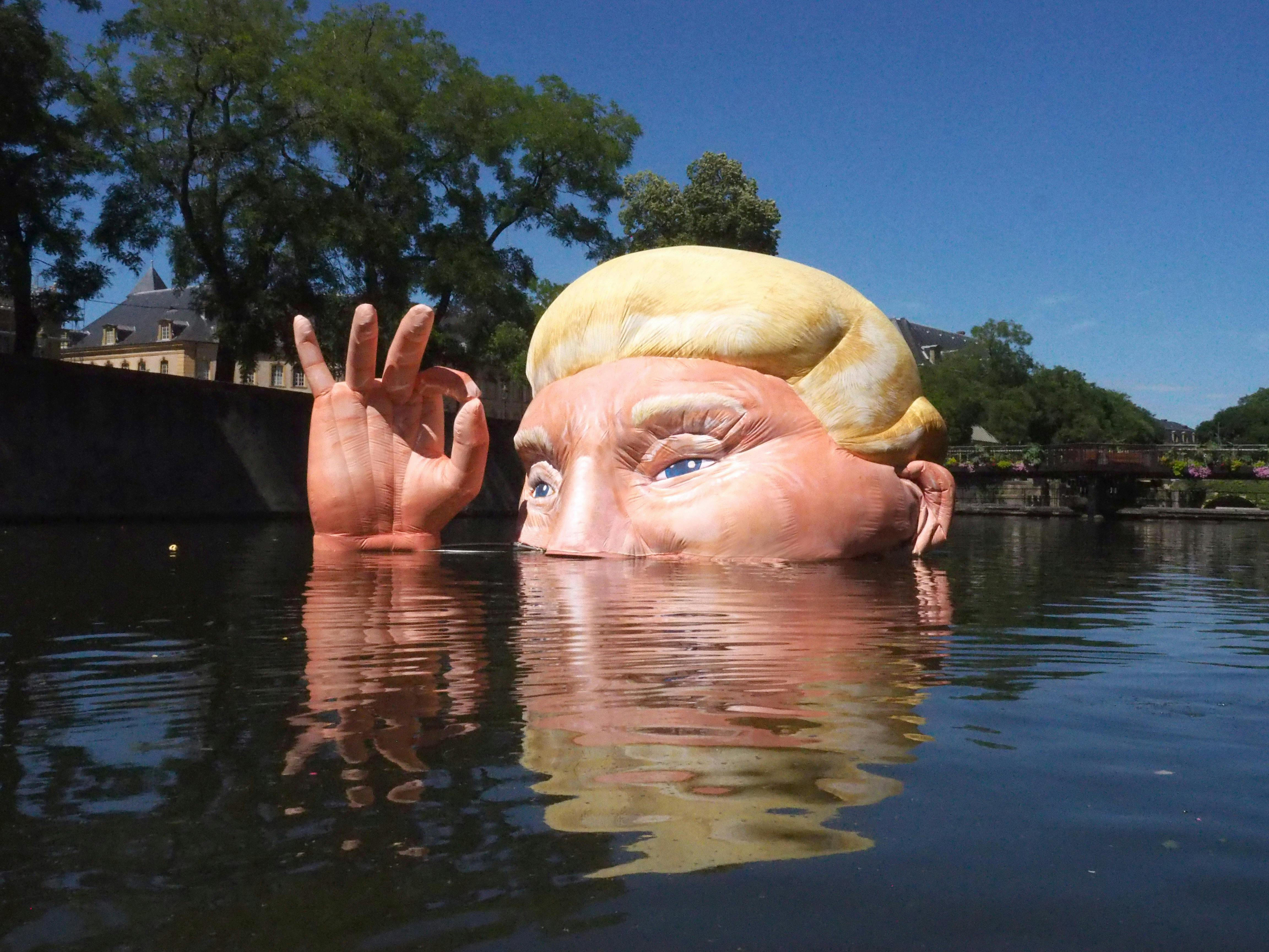 Une installation comique montrant le président Trump en déperdition mais qui malgré tout reste positifs: