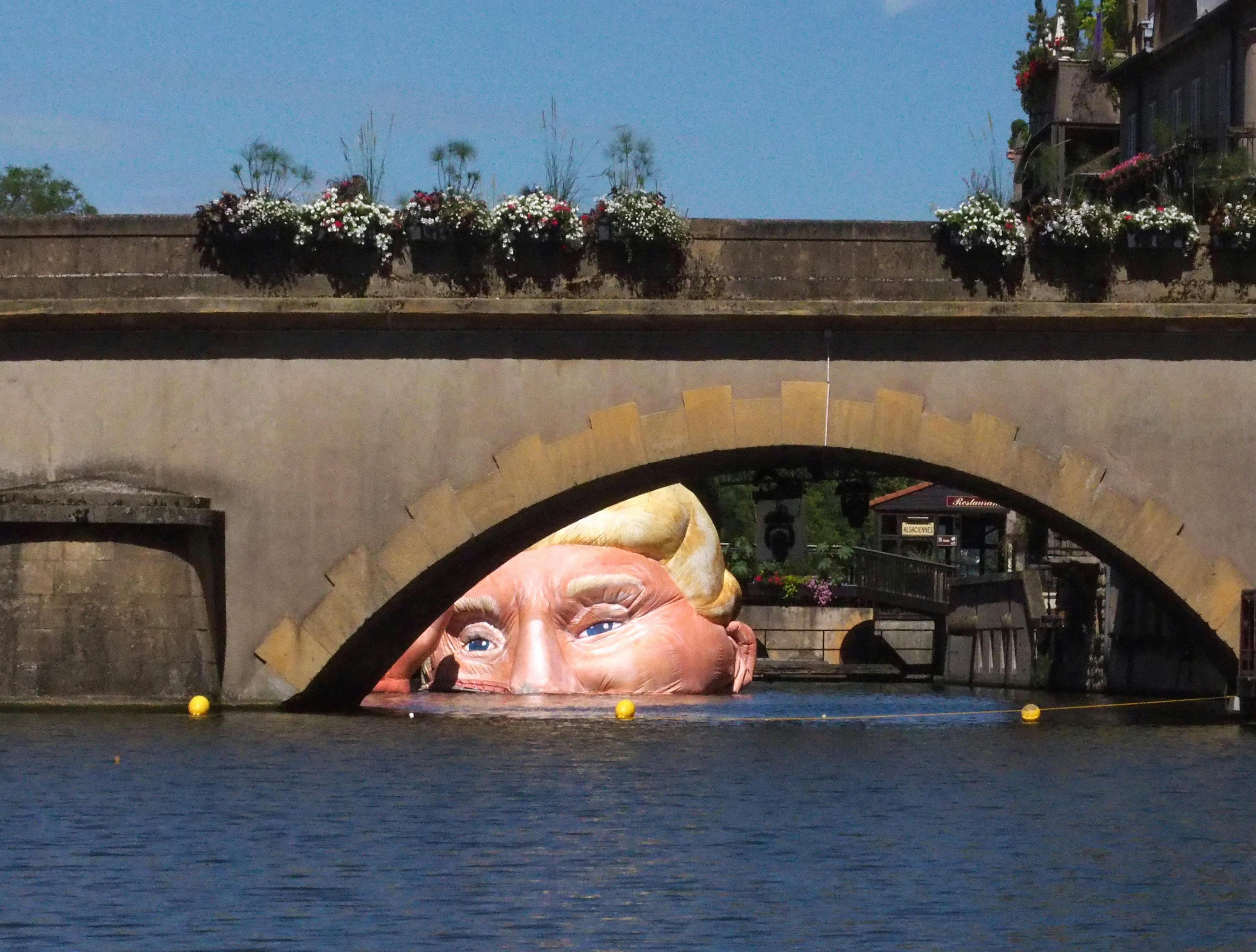 Le projet met en scène tout la suffisance d’un président, ici bâillonné par sa position immergée,