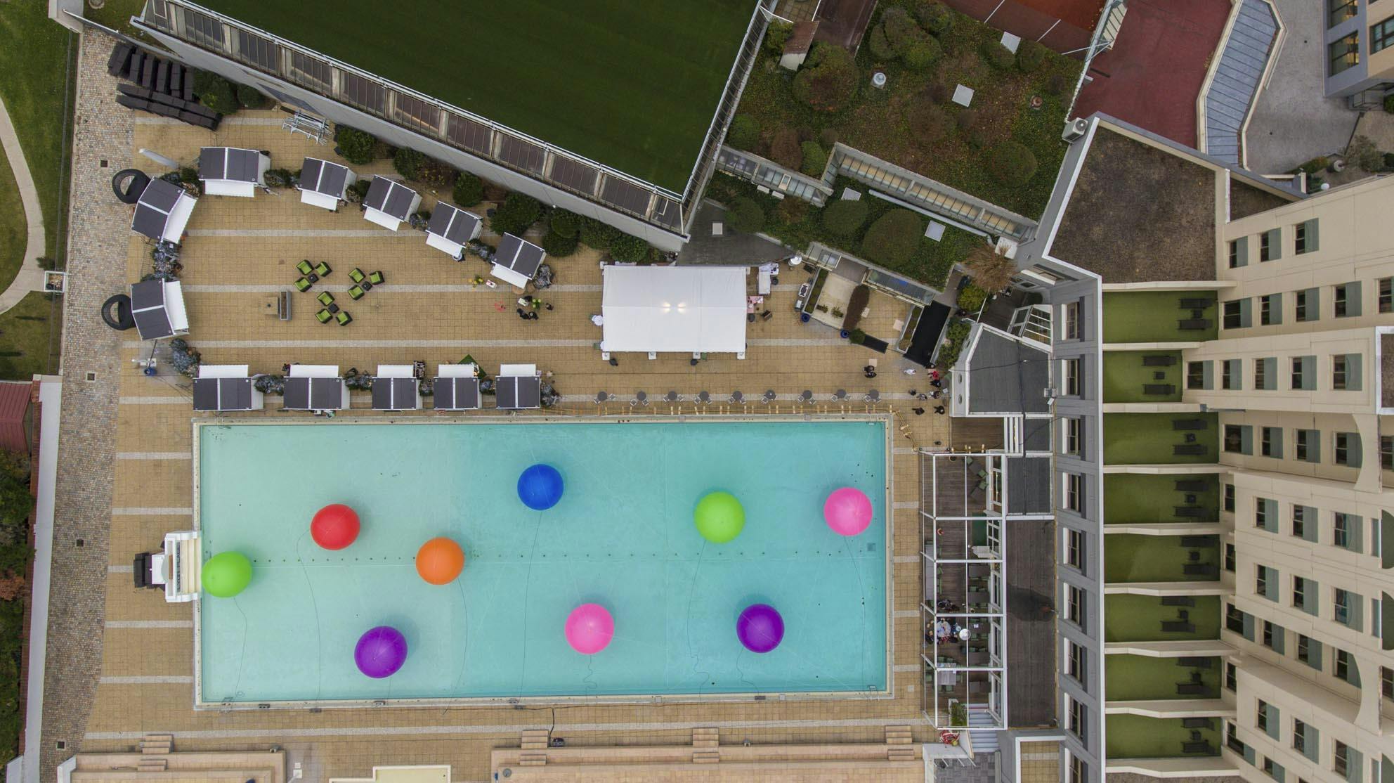 Installation lumineuse sur le mythique bassin de natation de Lyon plage
