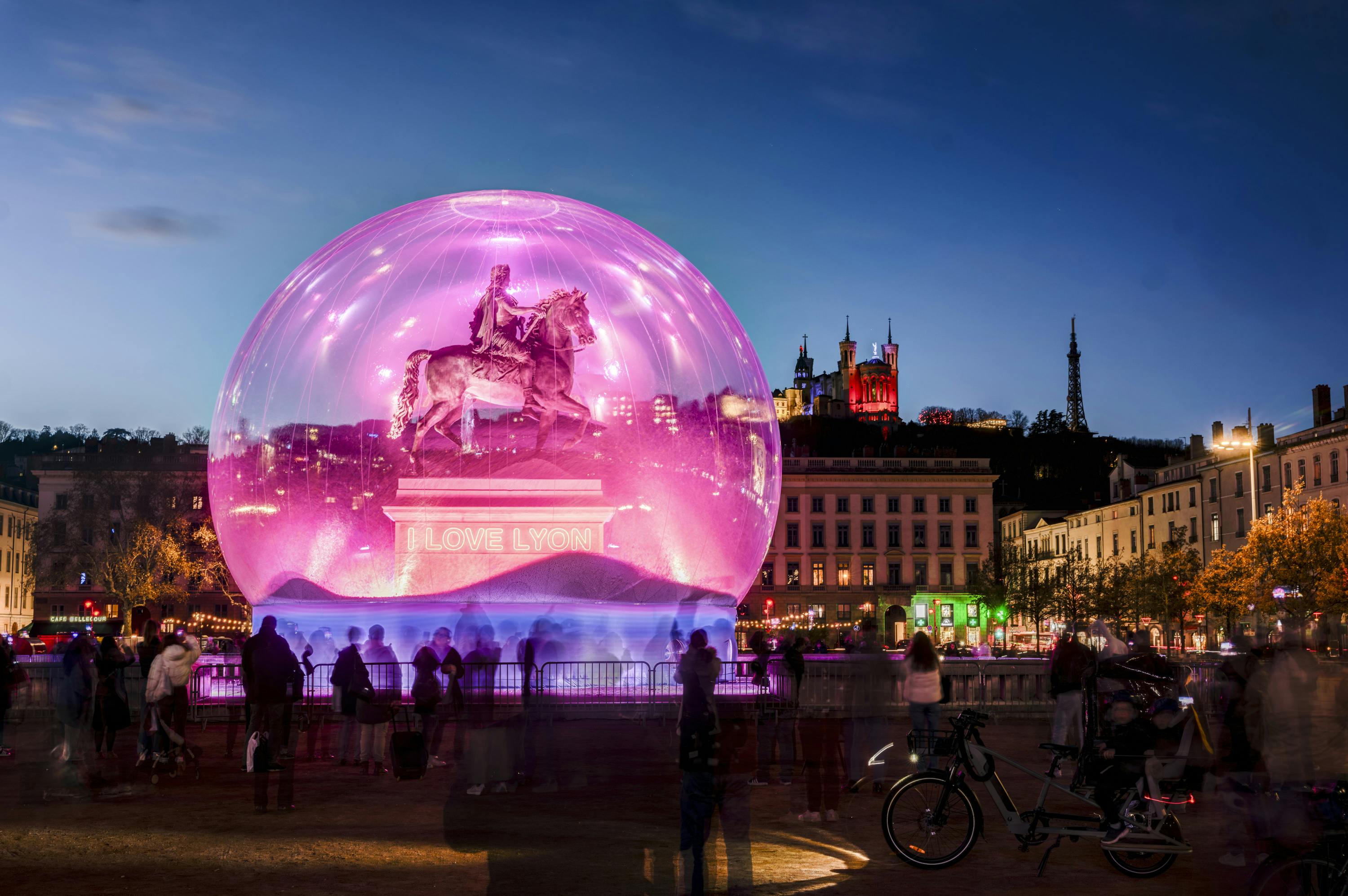 Présentée en 2006 et 2007 sur la place Bellecour, l’installation I LOVE LYON s’inscrit dans la lignée du ready-made : elle prend pour matériau brut un espace public déjà chargé d’histoire et de symboles. La statue équestre de Louis XIV, chef-d’œuvre de Lemot et repère incontournable de Lyon, devient ici un objet prêt-à-l’emploi, détourné de sa rigueur austère héritée du XIXe siècle.