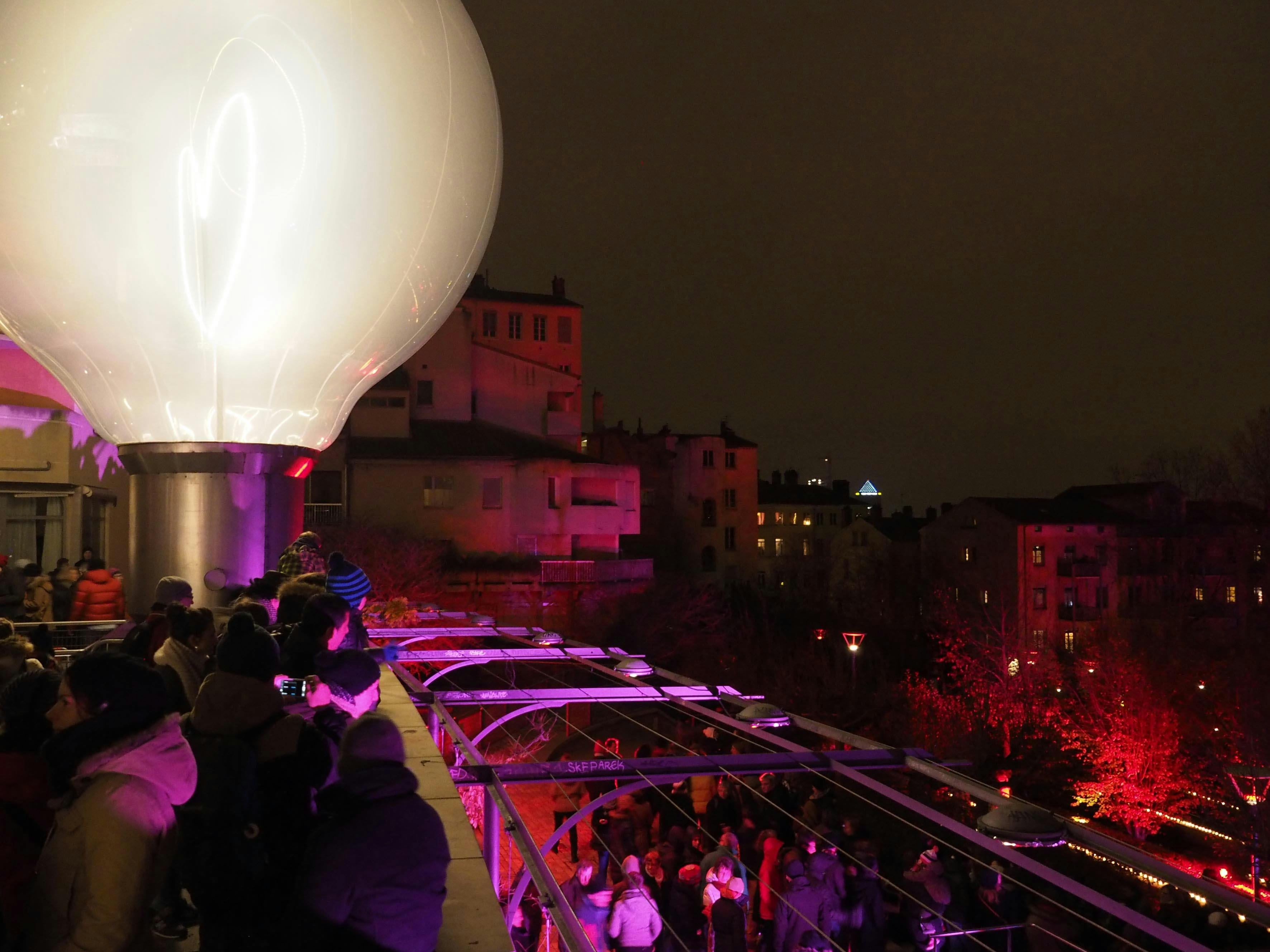L’ampoule monumentale avait un filament en forme de cœur et nous a rappelé, le lien intime de l’amour entre Lyon, sa lumière et son énergie et ses habitants